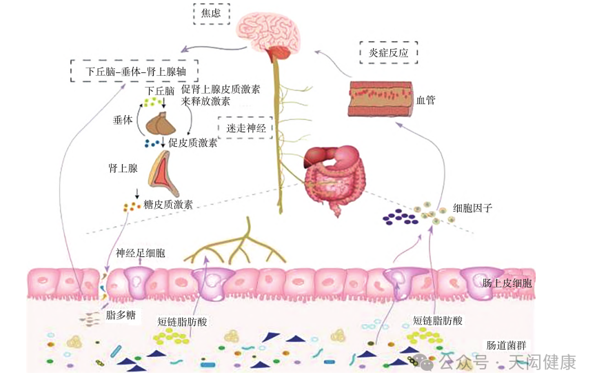 HPA 軸是腸-腦軸最重要的組成部分之一,情緒和生理應激會增加全身促炎細胞因子水平,刺激腸道炎癥和神經變性,從而產生焦慮情緒。