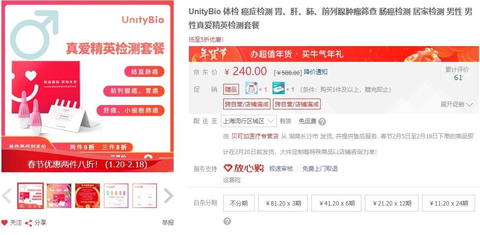 各種腫瘤標志物在免疫診斷的各個平臺上已經開發的相當完畢,一有新的標志物出現,不多時,便有新的免疫診斷試劑,但是存在明顯缺點,特異性和靈敏度不夠,以AFP為例,作為原發性肝癌的診斷指標,只有70%的病人,水平異常。京東上檢索癌癥早篩,有個以標志物作為檢測對象的試劑UnityBio,5種的癌癥篩查,價格240,如果提示高風險,應該有提示哪個部位的癌癥。